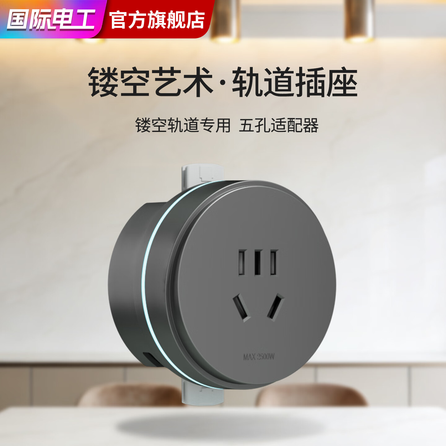 7M国际电工可移动镂空轨道插座带开关总控家用明装高端智能控餐边柜滑轨插排 烟雨灰-单个五孔适配器