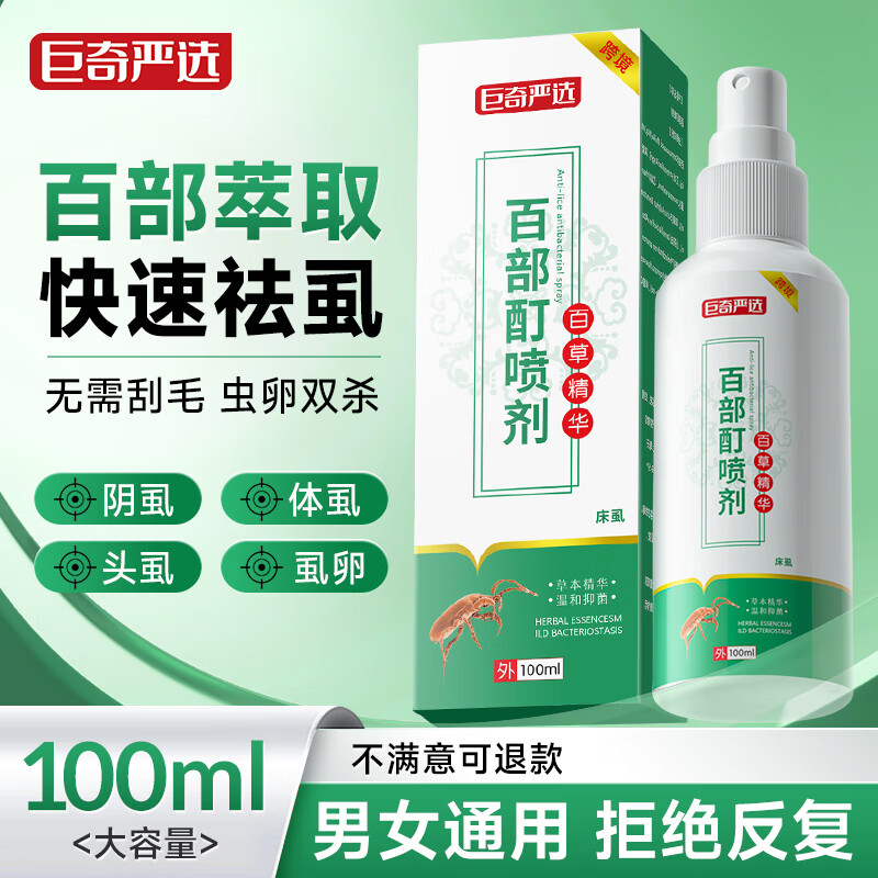巨奇祥医堂百部酊虱子药头虱去除虱卵阴虱男女私处立净抑菌喷剂100ml