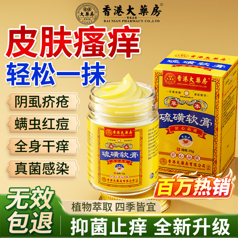 香港大药房有限公司硫磺软膏止痒抑菌皮肤瘙痒身体痒蚊虫叮咬蚊子肿消阴虱私处杀菌