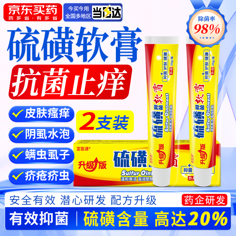 宣医通20%硫磺软膏乳膏阴虱疥虫非皮肤止痒膏私处阴囊潮湿疥疮两盒装