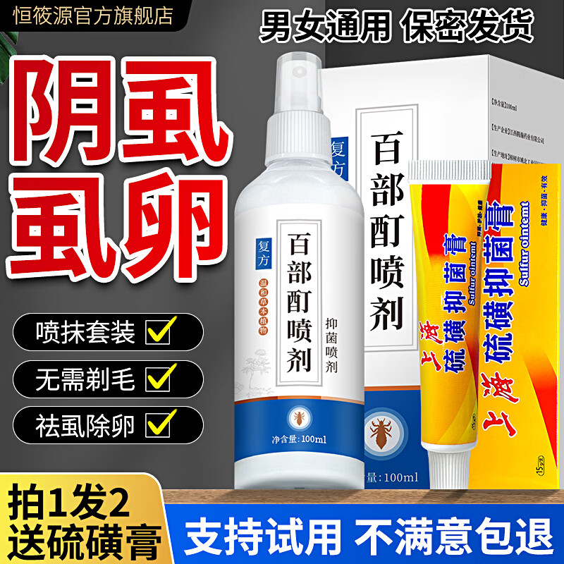 恒筱源百部酊阴虱专用药喷剂硫磺软膏阴虱男女士私处一扫除虱子药虫卵光