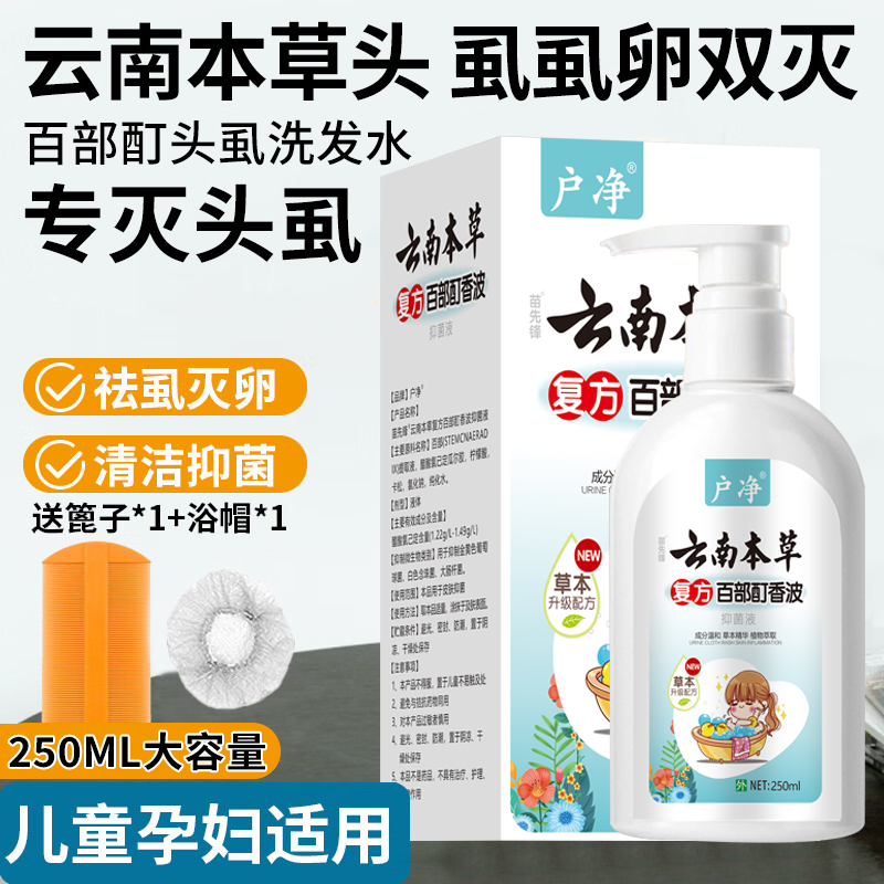 户净云南本草百部酊虱子药儿童小女孩头发孕妇用阴虱虱卵祛头虱洗发水