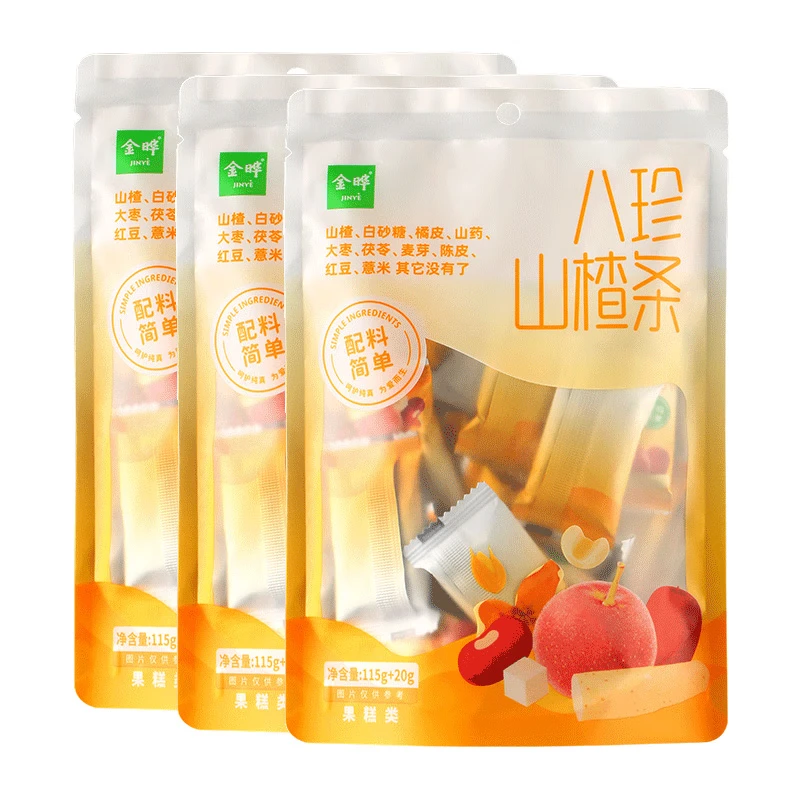 金晔无添加剂益生元山楂条陈皮风味袋装水果条果干果脯蜜饯小零食 金晔八珍山楂条 135g*3袋