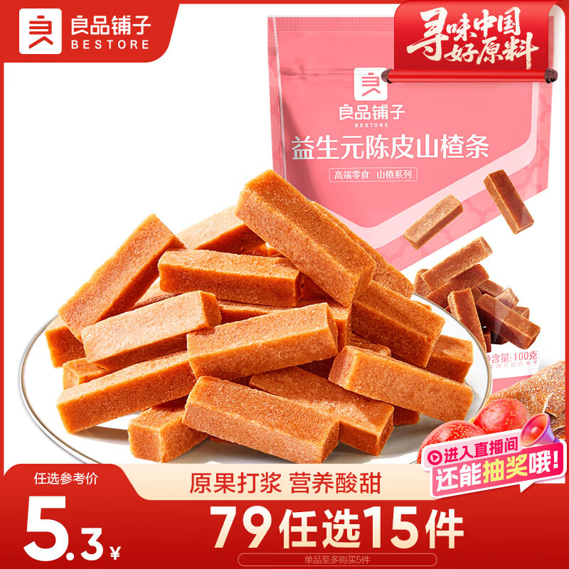 良品铺子 益生元陈皮山楂条100g酸甜果干果脯蜜饯果干解馋休闲小零食