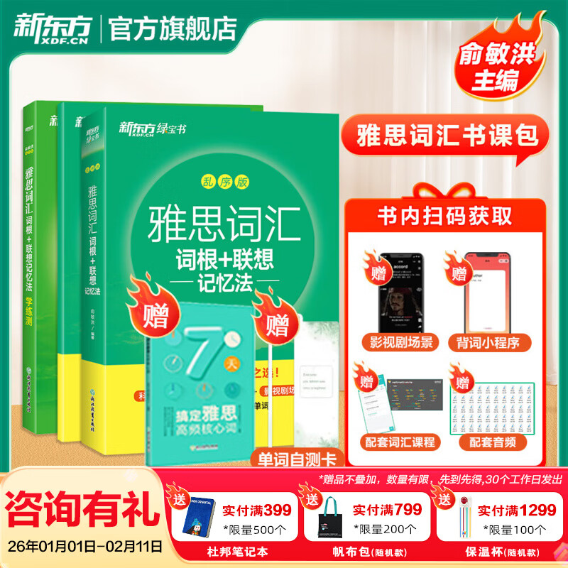 新东方绿宝书IELTS雅思词汇词根+联想记忆法 乱序版/乱序便携版/雅思真题20/语法/阅读/写作/听力 【全2册】雅思词汇乱序版+同步学练测