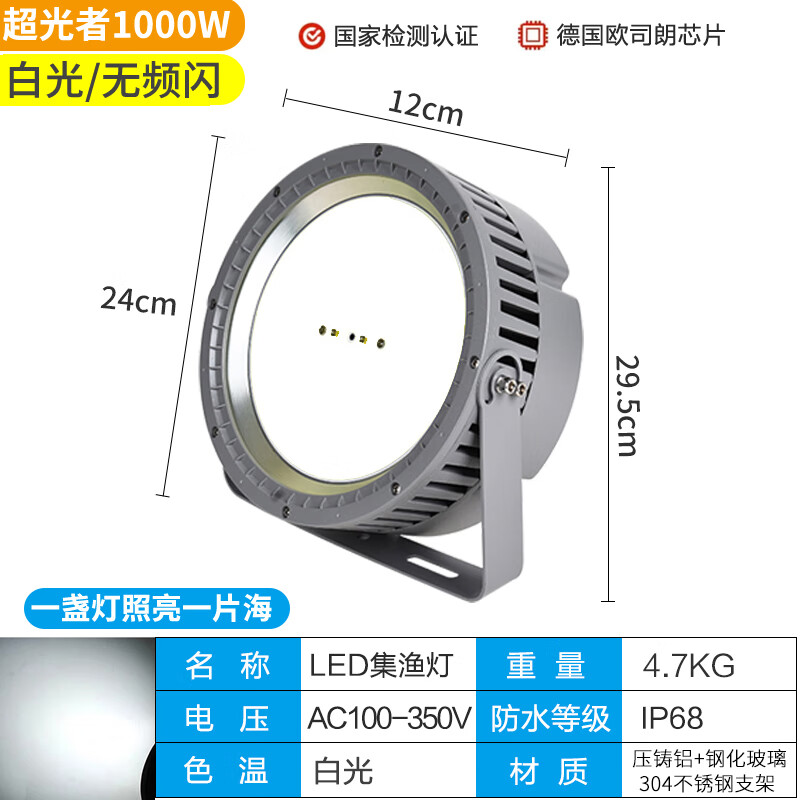 OEMG日本进口品质LED集渔灯诱鱼青光鱿鱼灯渔船用捕鱼灯大功率射灯强 1000W白光110V-350V无频闪+限拍21