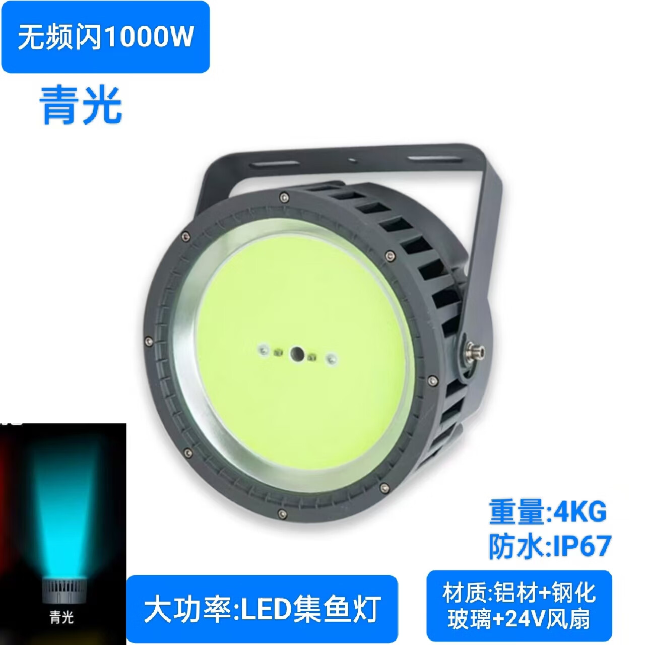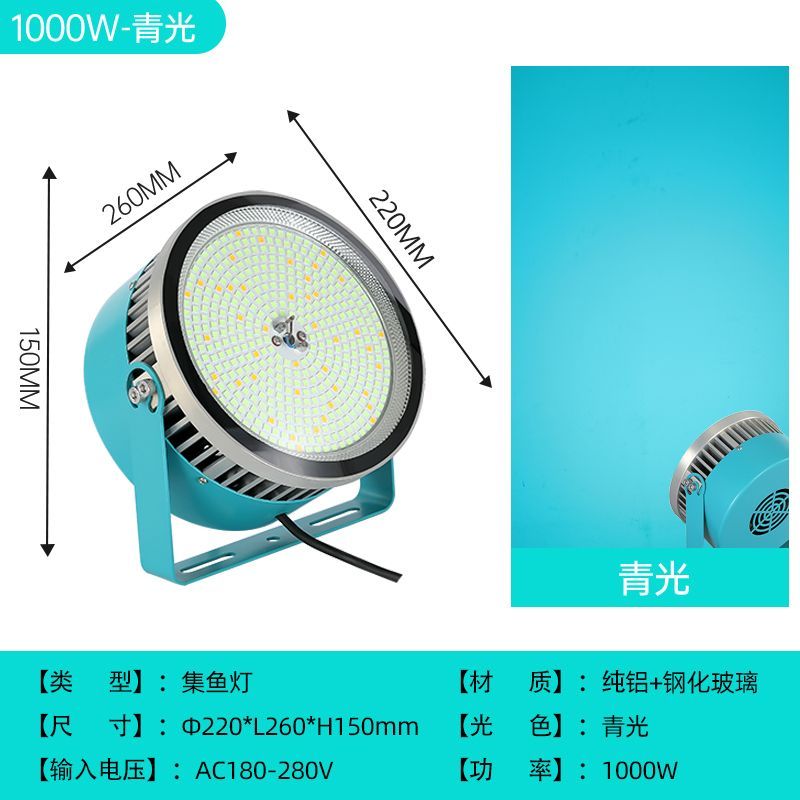 灰鸭(无)渔船聚鱼灯LED集鱼灯大功率海钓鱿鱼专用照明灯灯光渔船超高亮 顶配版超高亮1000W(聚渔青)5050芯片 青光