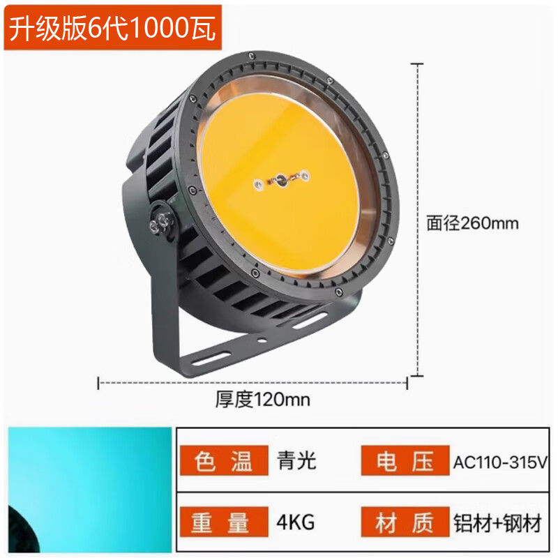 TLXT探照灯强光远渔船led鱿鱼探照灯防无线电干扰户外防水集鱼灯海钓 抗干扰超亮款-1000w青光 220v -E1