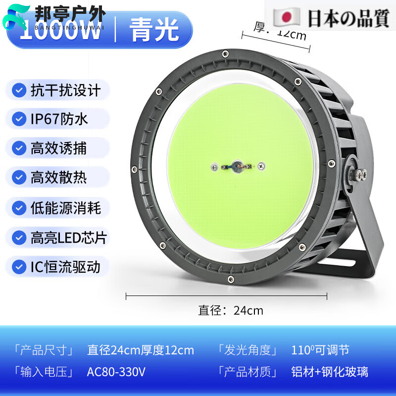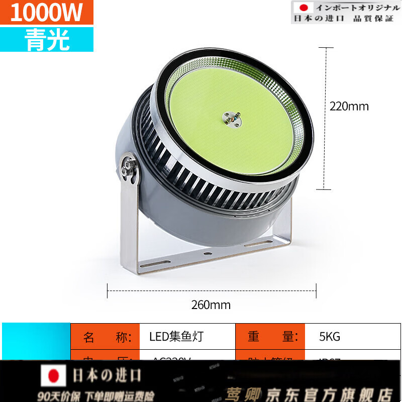 SMVP旗舰 日本进口品质渔船聚鱼灯led集鱼灯大功率海钓鱿鱼专用照明 (220V)1000W 青光 加强版