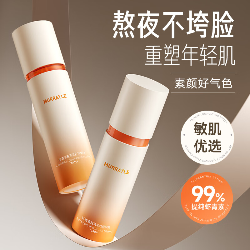 沫芮虾青素水乳套装美白去黄提亮抗皱淡纹紧致补水保湿官方正品护肤品 【双抗CP】全脸提亮丨提拉紧致 水+乳两件套