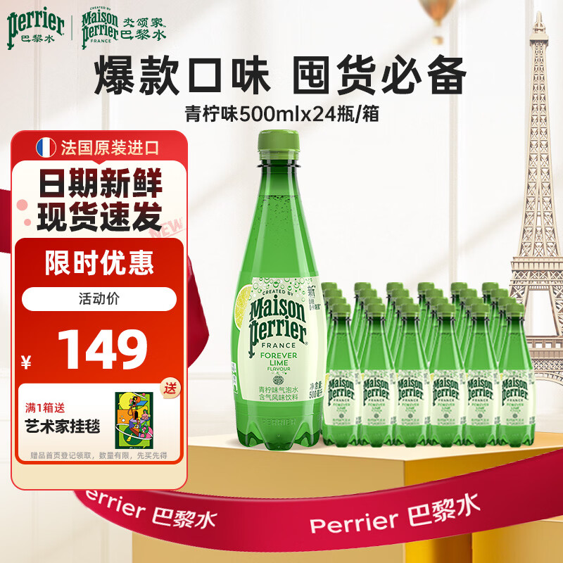 Perrier氼颂家巴黎水 进口气泡水 0糖0卡 青柠味矿泉水500ml*24瓶