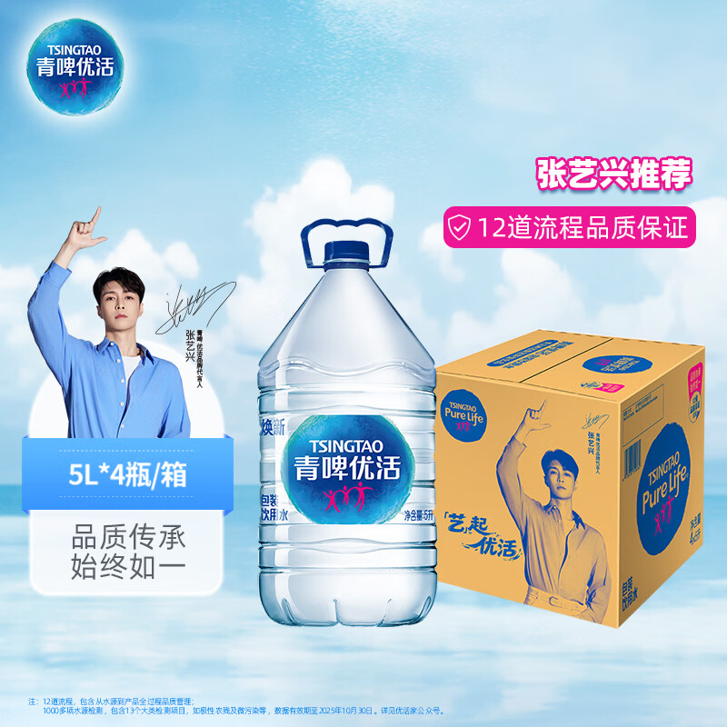 青啤优活(TSINGTAO)饮用水5L*4瓶 整箱大桶装水 张艺兴代言【热门商品】
