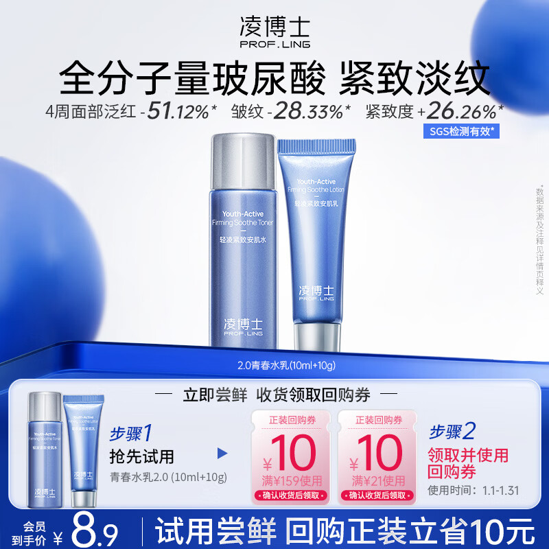 凌博士【会员试用】青春水乳3.0(精华水10ml+精华乳10g)每个ID限购1件