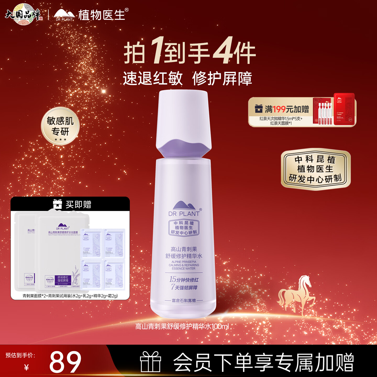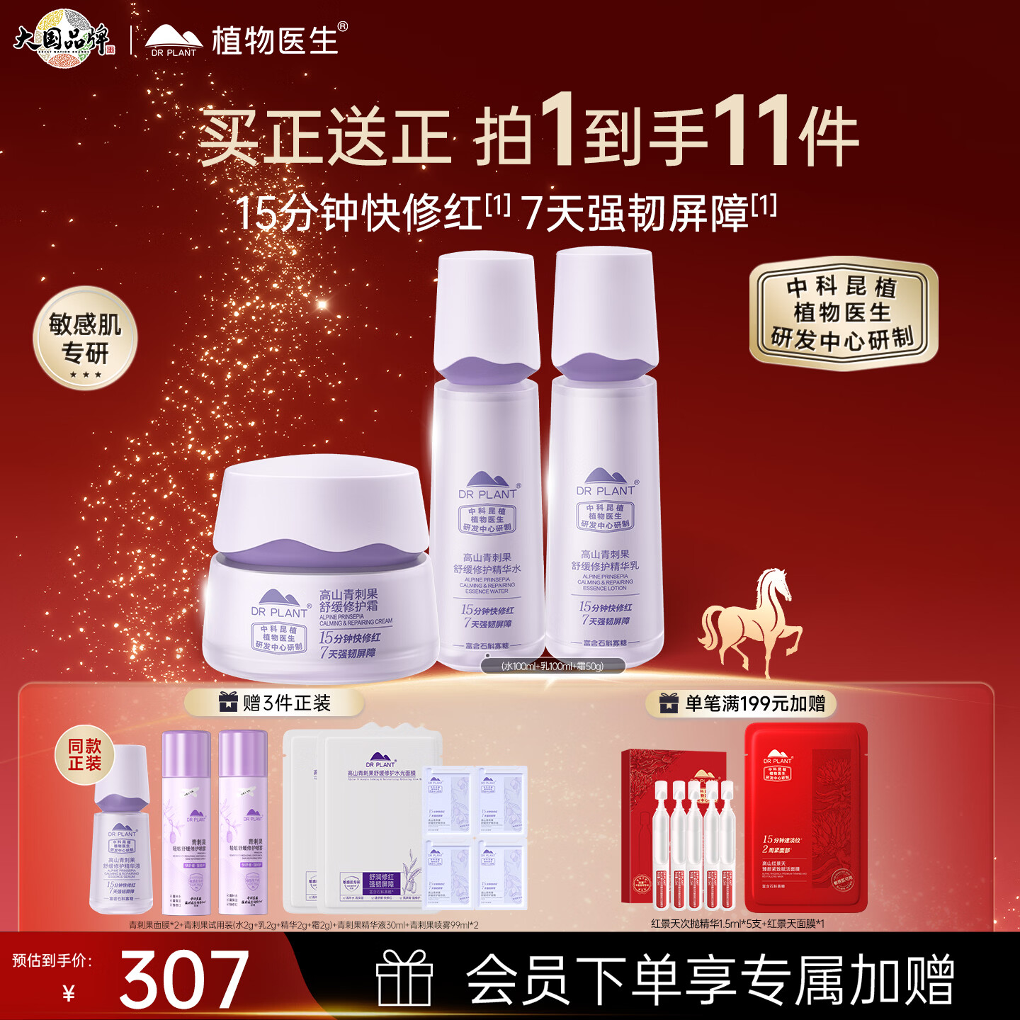 植物医生高山青刺果舒缓修护3件套新年礼物(水100ml+乳100ml+面霜50g)