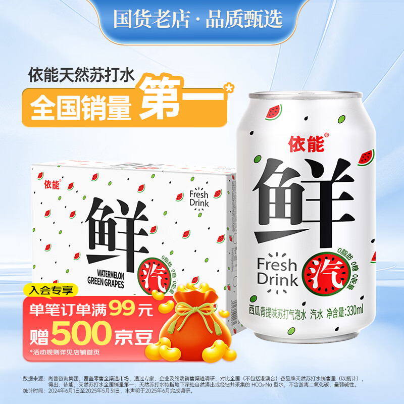 依能鲜汽 汽水 西瓜青提气泡水饮料苏打水 无糖0卡 330ml*24罐 整箱装
