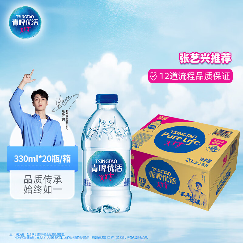 青啤优活(TSINGTAO)饮用水330ml*20瓶整箱装 小瓶装水 商务会议 张艺兴代言