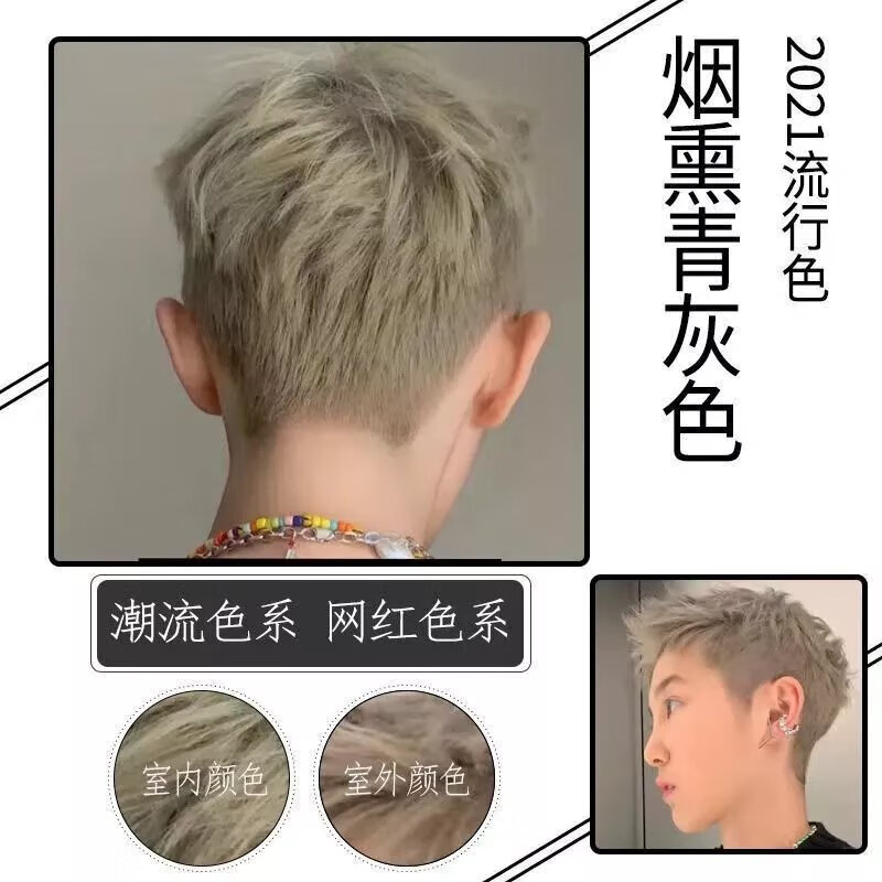 俪缇青灰色染发剂2022流行色显白自己在家染发夏季一步上色免漂 青灰色(无需褪色)一步上色