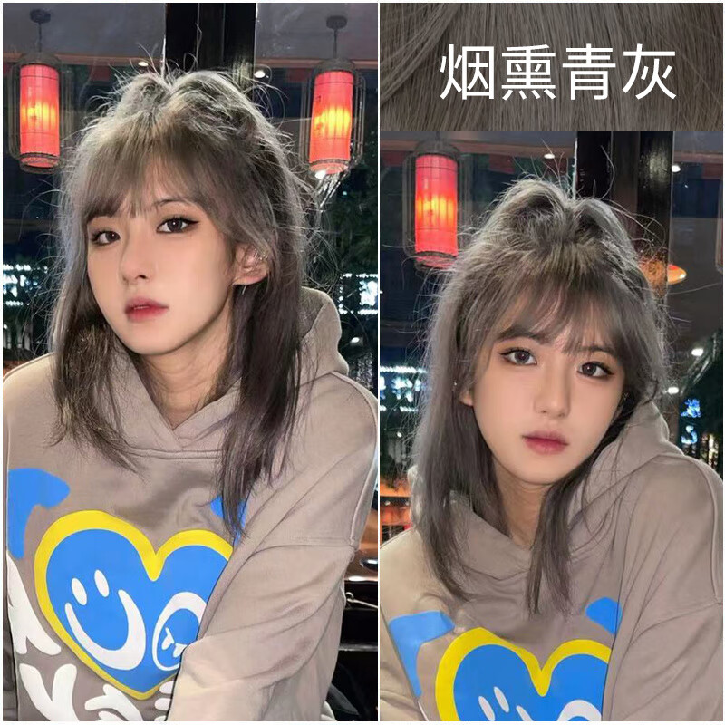 首品烟熏青灰色新款染发剂膏自己在家染银白灰色雾霾灰黑茶灰白金烟灰 烟熏青灰色【带褪色】8.5度黄染