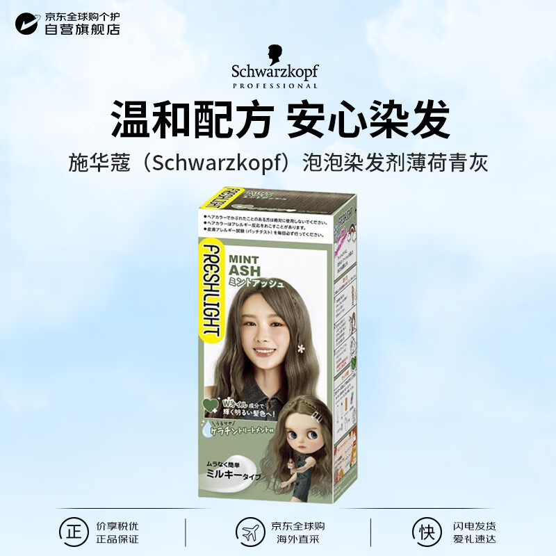 施华蔻(Schwarzkopf)泡泡染发剂薄荷青灰 男女通用不沾头皮日本原装进口