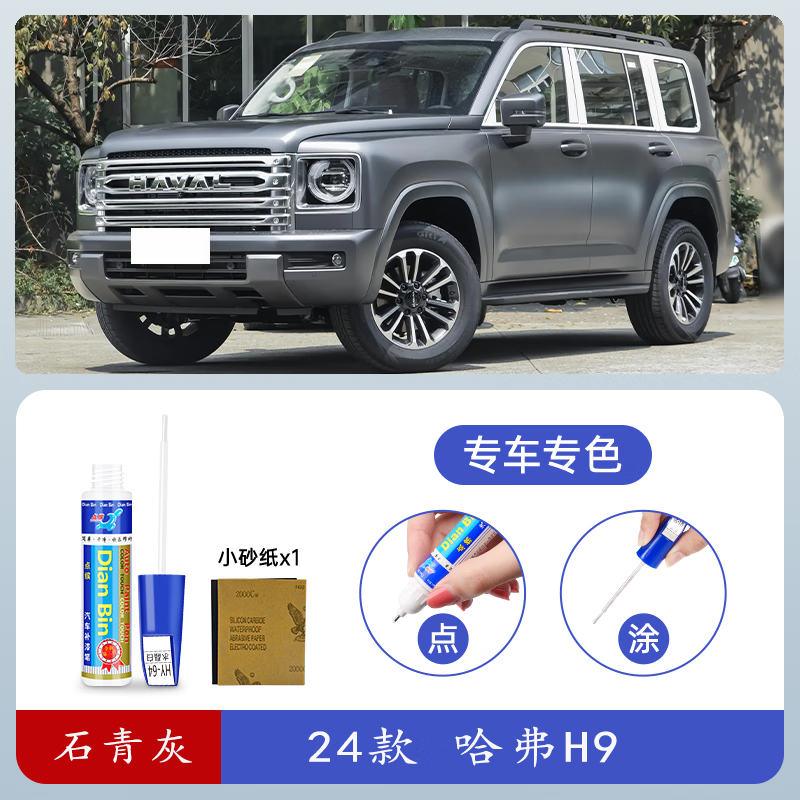 24款全新哈弗H9石青灰烟波白补漆笔青山绿瓦当黑车漆划痕修复喷漆 石青灰【送砂纸】 补漆笔【简单点涂】