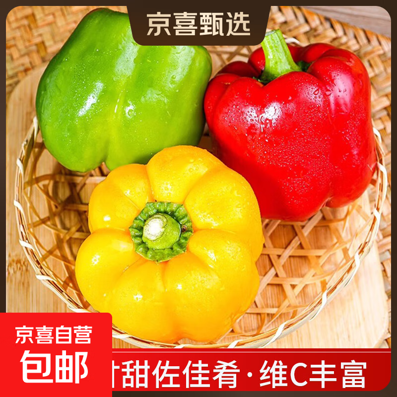 新鲜彩椒五彩椒当季现摘圆椒绿青椒灯笼甜椒新鲜蔬菜产地直发 三色彩椒净重1.8斤