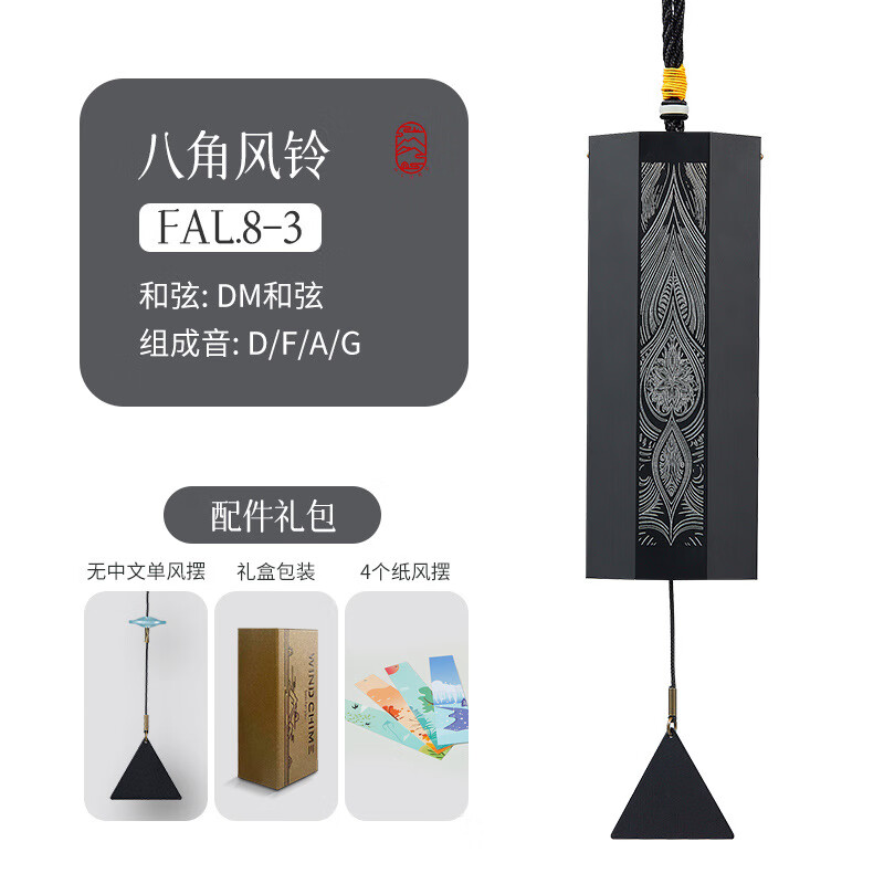 鲁儒日式手摇风铃竹制瑜伽乐器音乐盒装饰挂件冥想风铃阳台女生日礼物 8音风铃-八角铝材质