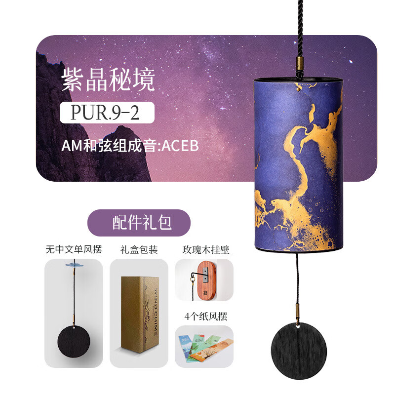 鲁儒日式手摇风铃竹制瑜伽乐器音乐盒装饰挂件冥想风铃阳台女生日礼物 9音风铃 紫晶AM和弦+红玫瑰挂壁