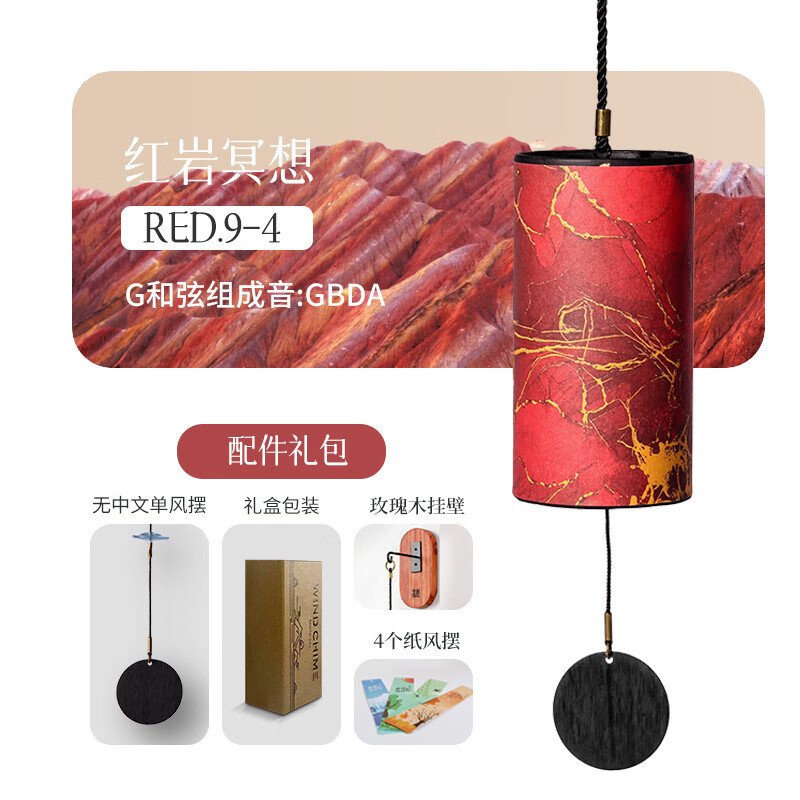 鲁儒日式手摇风铃竹制瑜伽乐器音乐盒装饰挂件冥想风铃阳台女生日礼物 9音风铃 红岩G和弦+红玫瑰挂壁