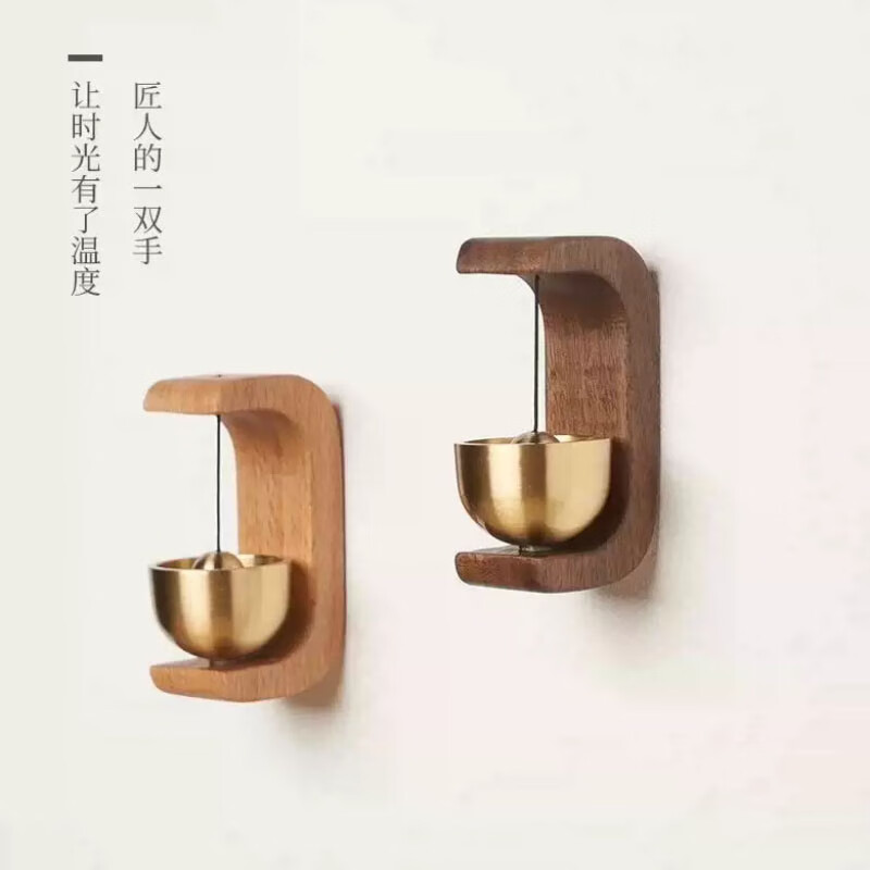 Flatsons多巴胺小风铃清新咖啡店琴行磁吸冰箱贴清脆音疗实木日式乐器铜铃 胡桃木款小风铃