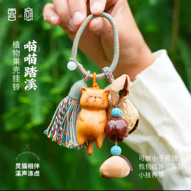 云愈坚果壳音疗挂铃满愿果壳挂件背包配饰手摇铃果壳风铃包包挂串 喵喵踏溪挂铃*1 倾听自然/独特音色/手工风铃