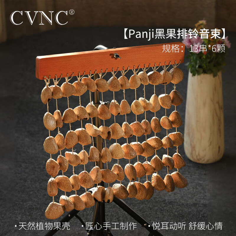 CVNC天然果壳铃印尼果壳铃铛瑜伽冥想手摇铃手工果壳排铃音束风铃 黑果排铃+音束支架