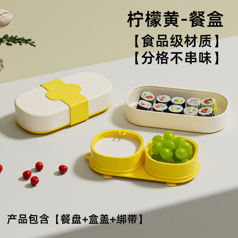 PUTOT宝宝硅胶辅食分格餐盘1可蒸煮外出露营便携保鲜便当饭盒儿童餐具3 柠檬黄-硅胶餐盒 【食品级硅胶】