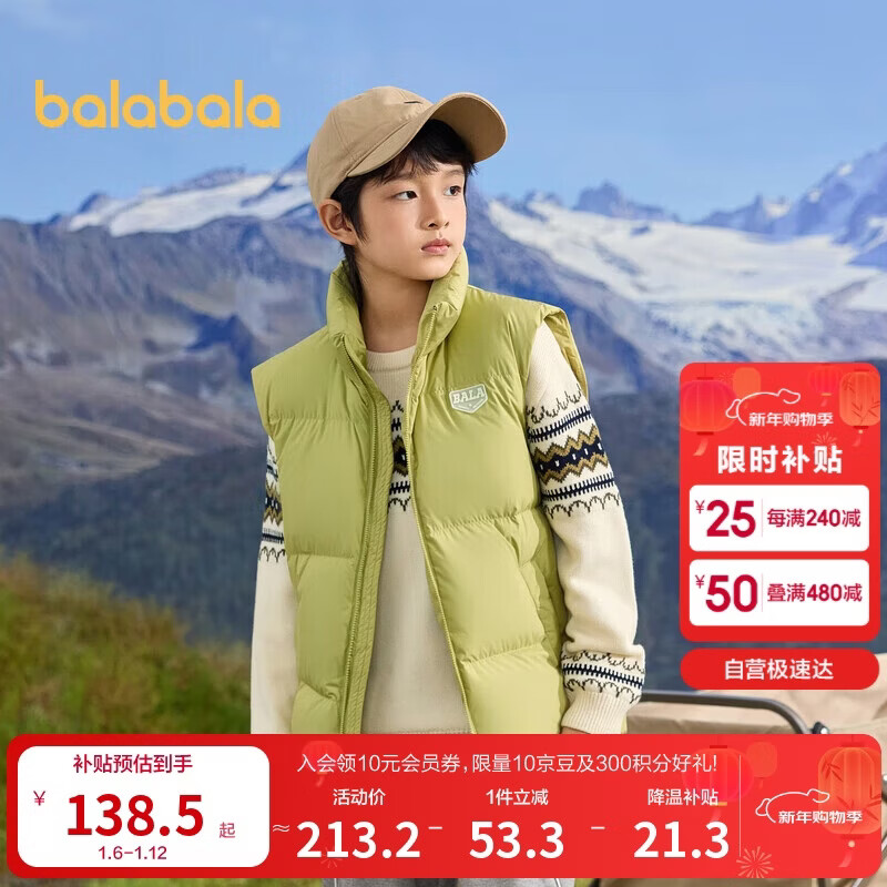 巴拉巴拉童装儿童马甲男童女童羽绒服外套2025新款冬装上衣保暖舒适百搭潮