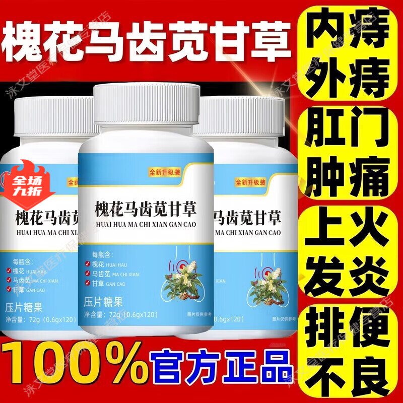 胖东来同款槐花马齿苋甘草片茯苓片老牌子嗓子干痒咳嗽正品中药材 【大药房旗舰店】 120粒*1瓶 正品-甄选-1瓶120粒