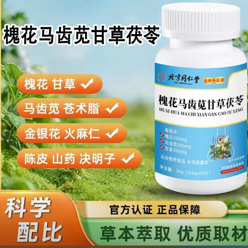 北京同仁堂槐花马齿苋甘草片茯苓片中老年直播同款通用升级萃取浓缩草本 2瓶