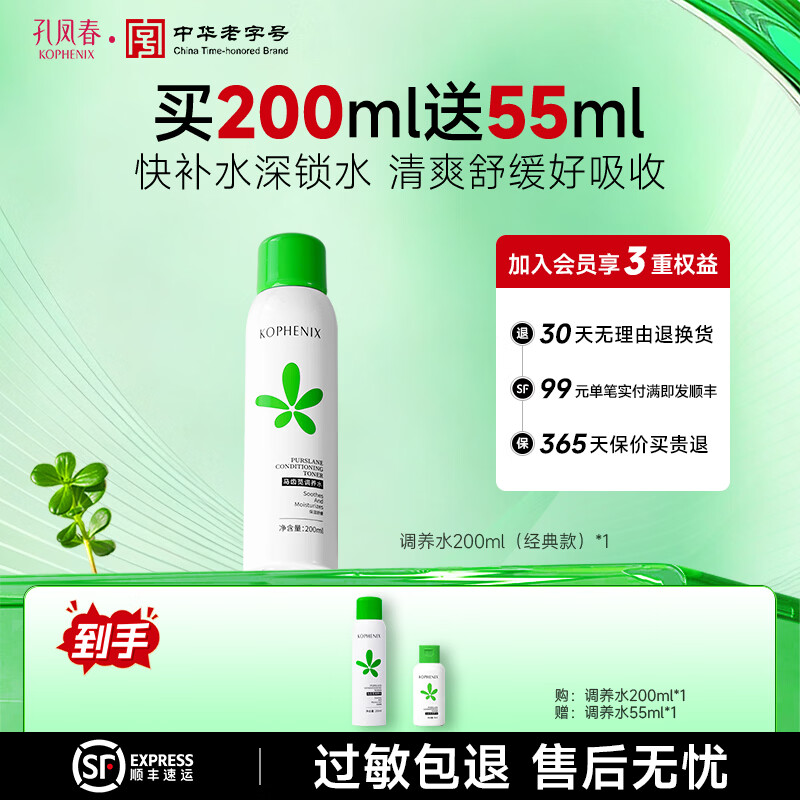 孔凤春爽肤水200ml马齿苋调养补水喷雾保湿舒缓控油护肤送女友新年礼物