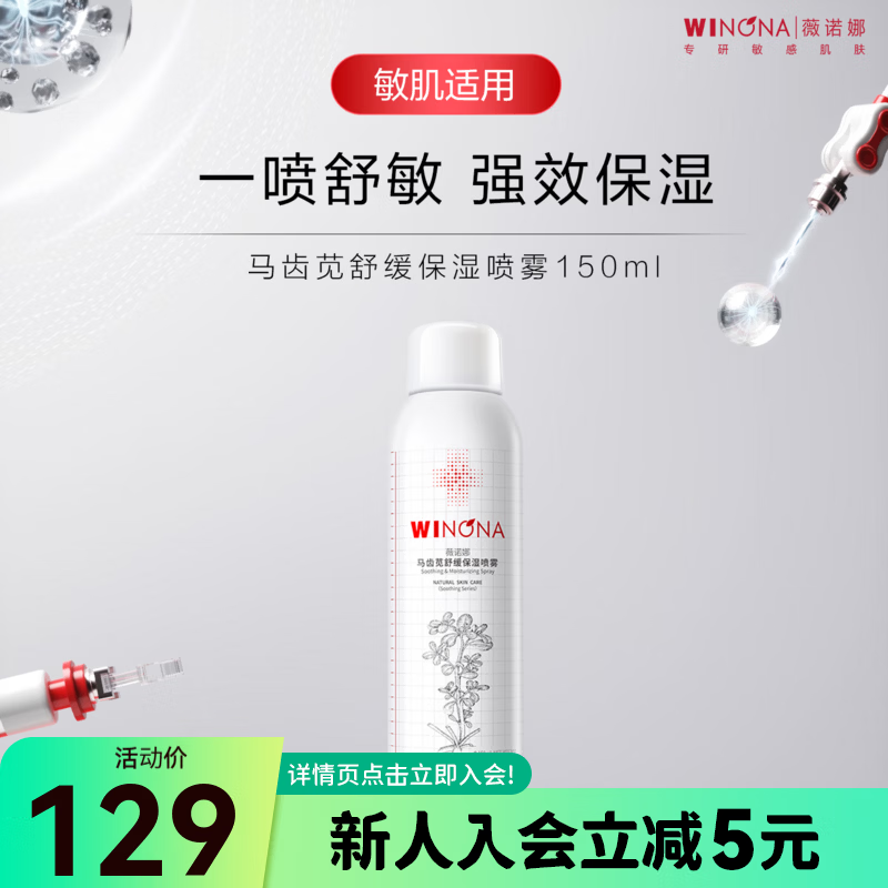 薇诺娜(WINONA)马齿苋舒缓保湿喷雾150ml敏肌修护爽肤化妆水补水男女士新年