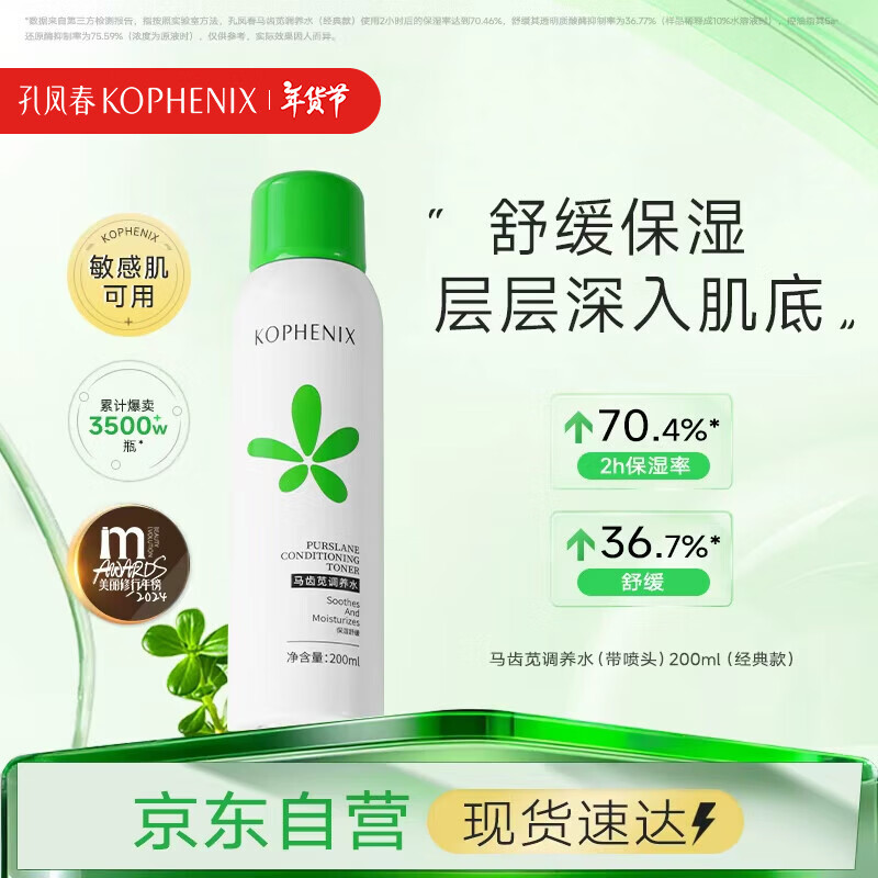 孔凤春马齿苋调养水补水喷雾保湿水爽肤水湿敷舒缓屏障化妆精华水护肤品 200ml(经典款有喷头)