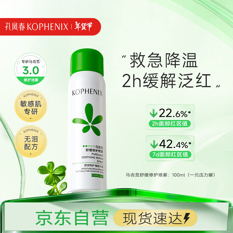 孔凤春爽肤水100ml马齿苋舒缓修护喷雾补水保湿护肤便携送女友新年礼物