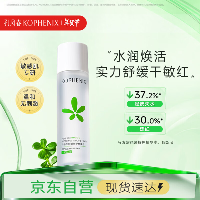 孔凤春马齿苋舒缓特护精华水180ml滋润保湿温和修护肌肤送女友新年礼物