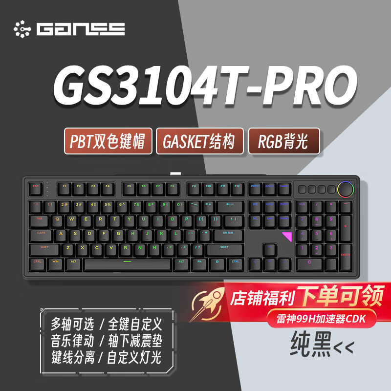 GANSS 3087TPro/3104TPro/3108TPro客制化机械键盘高斯三模RGB无线键盘蓝牙2.4G有线热插拔办公游戏键盘 3104TPro黑色【GASKET结构】三模RGB KTT静音红轴