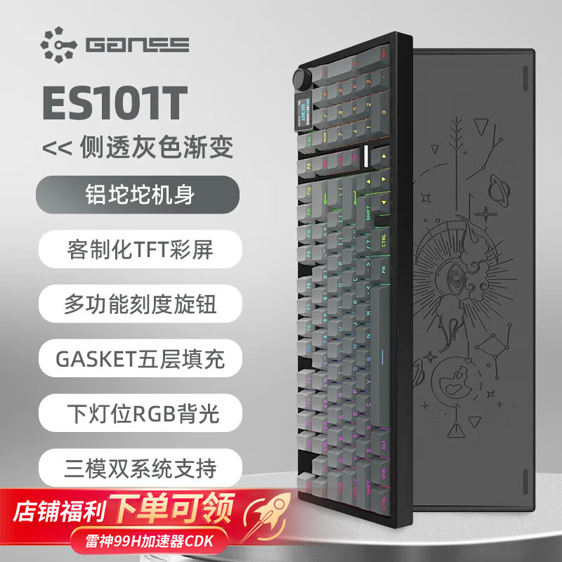 HELLO GANSSES101T客制化高斯机械键盘铝坨坨CNC三模蓝牙有线2.4g无线电竞游戏办公 黑色ES101T 侧透灰色渐变【KTT-奶龙轴】