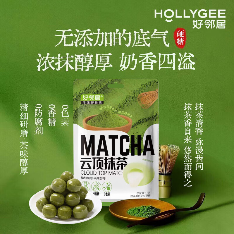 好邻居椰子糖云顶抹茶牛奶高钙混合口味夹心硬糖网红喜糖休闲零食 新款云顶抹茶4袋