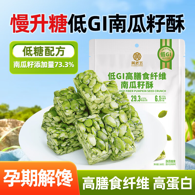 黄老五 低GI南瓜籽酥 180g/袋 高膳食纤维 慢升糖 孕妇低糖解馋零食