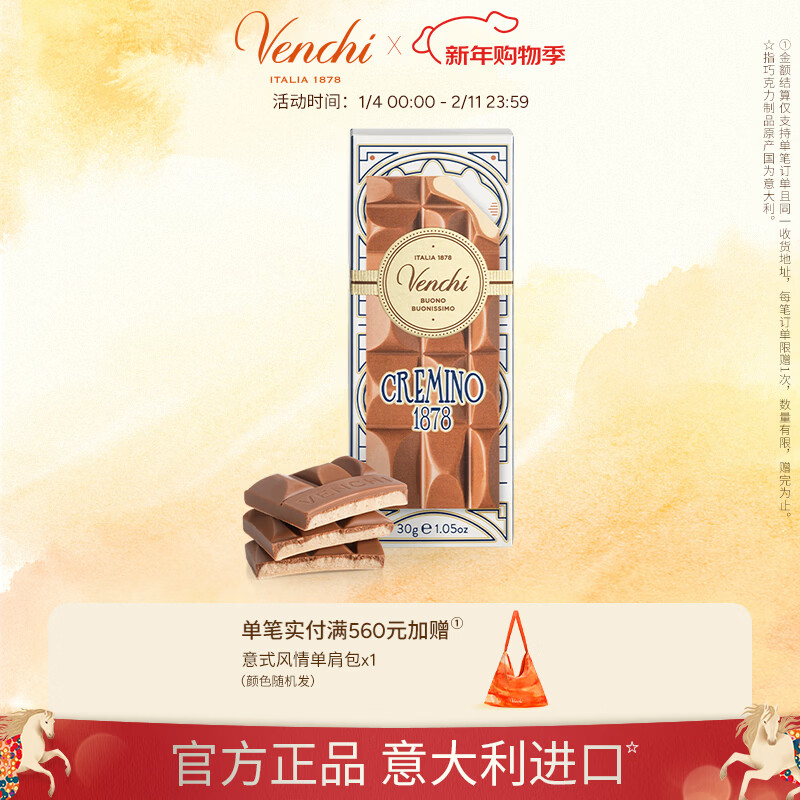 闻绮(Venchi)进口牛奶巧克力 迷你排块30g 高端休闲零食 喜糖 伴手礼 礼物