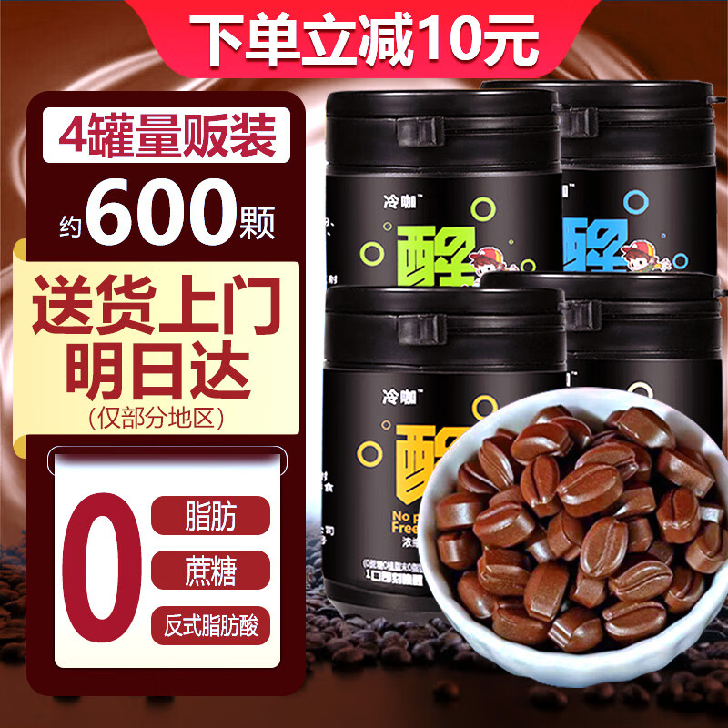 咖啡糖0蔗糖0脂咖啡糖果干口嚼即食卡浓缩高因黑咖啡糖豆提学生神 4口味混合各一罐【约600颗】