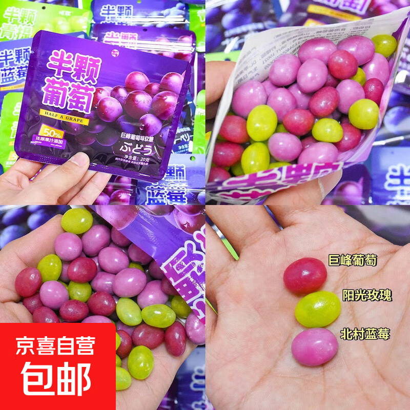 【50%果汁添加】半颗软糖葡萄蓝莓青提味高果汁果味糖休闲零食hd 1包