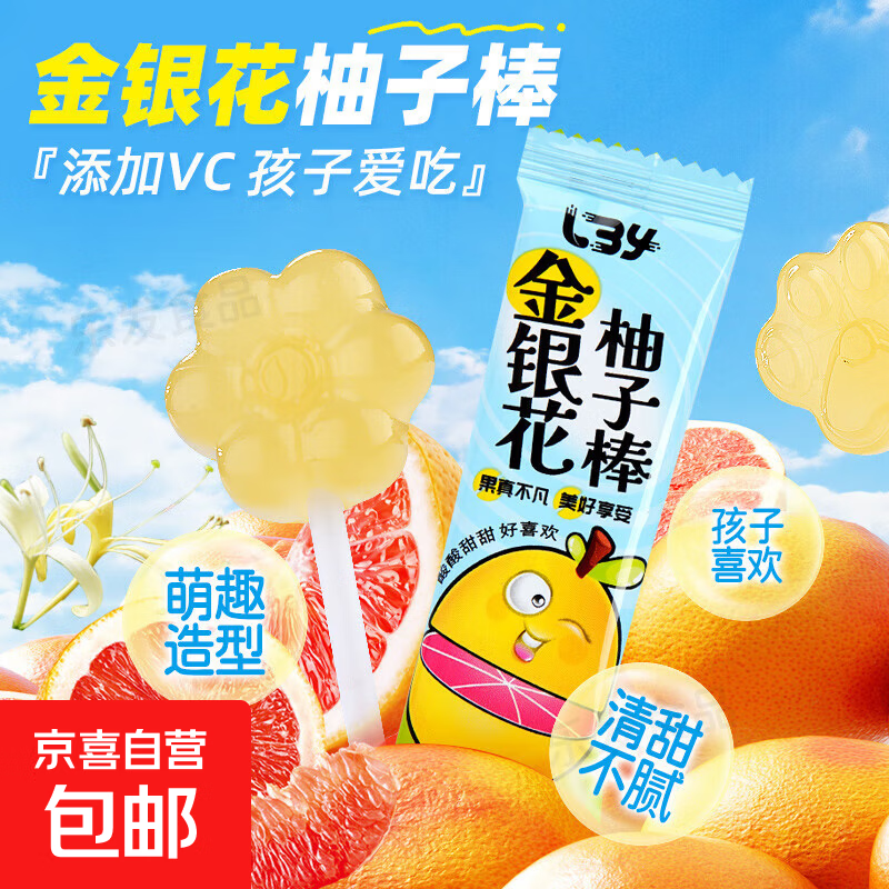 儿童零食解馋爆款无添加健康独立包装高颜值 金银花柚子棒糖30支
