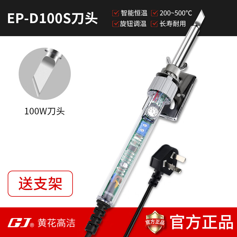 高洁黄花高洁大功率电烙铁200W内热可调温电络铁工业恒温锡焊无铅烙铁 100瓦刀头款标配+支架