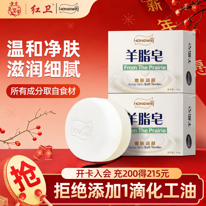 红卫羊脂皂120g*2块香皂沐浴洗脸洗澡二合一控油洁面肥皂去黑头手工皂